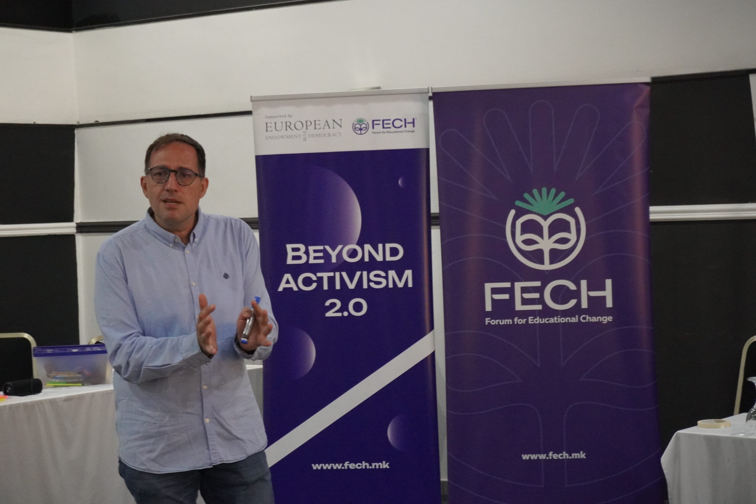 Blendi Hodai, drejtor ekzekutiv i Forumit për Ndryshime në Arsim ishte në mesin e trajnuesve. Ai hapi trajnimin duke biseduar me pjesëmarrësit në lidhje me rëndësinë e pjesëmarrjes rinore dhe aktivizmit qytetarë.